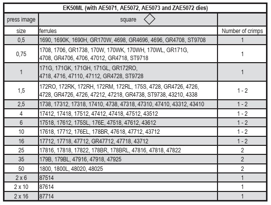 Klauke EK WF 50 ML Krimpovačka na dutinky 0,5 - 50 mm²