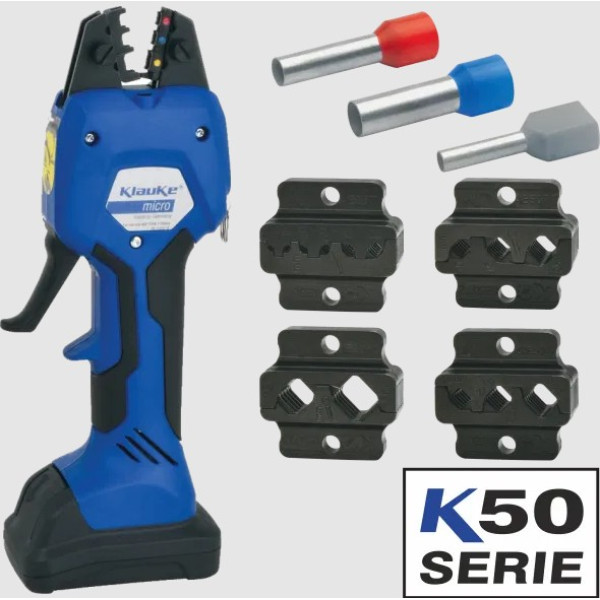 Profesionálny elektromechanický krimpovací nástroj Klauke EK WF 50 ML je určený na rýchle a presné lisovanie dutiniek a dvojitých dutiniek v rozsahu prierezov 0,5 – 50 mm².