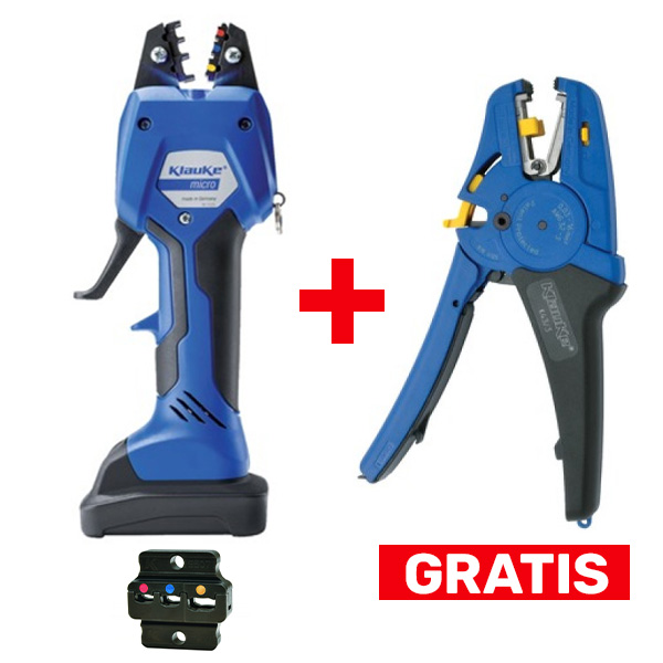 Akciový balík obsahuje: Klauke EK 50 ML nástroj; 10.8 V / 2.5 Ah, Li-Ion akumulátor; nabíjačka 230V; lisovacia matrica IS5071 (súčasť stroja) pre izolovaný konektor 0,5 - 6 mm²; lisovacia matrica AE5072 pre dutinky 10-25 mm² ; strihacia matrica S502 do 25mm² ;Kufrík z tvrdeného plastu.Možnosť dokúpiť matrice na krimpovanie, strihanie a odizolovanie.
